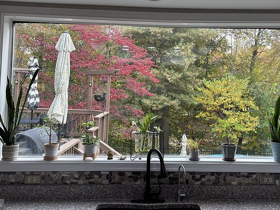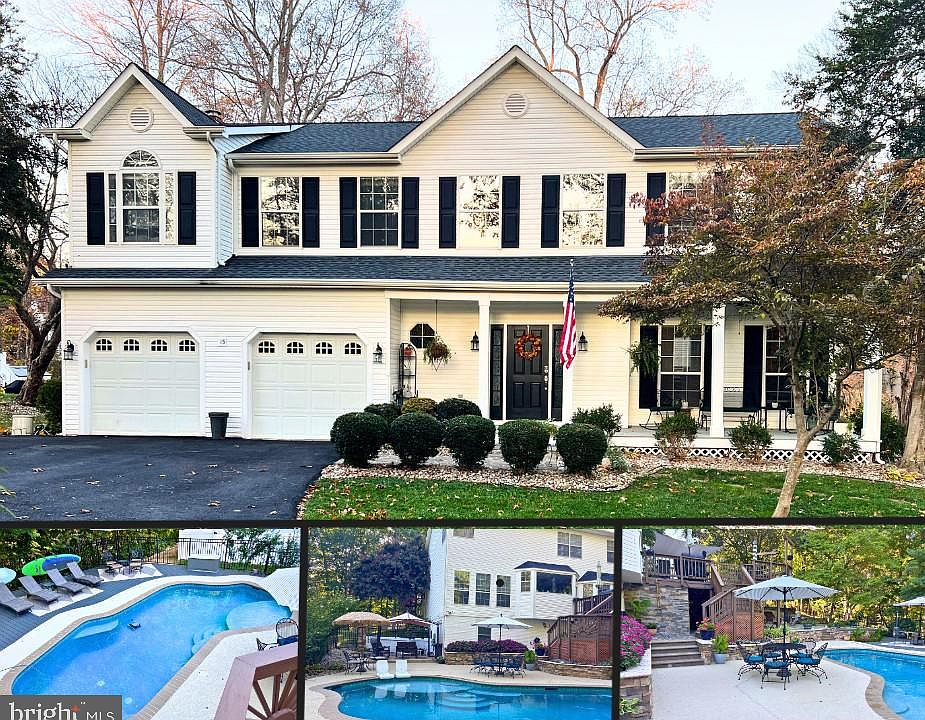 Welcome to your own private retreat! This home offers luxury living both indoors and outdoors. The extensive hardscape, complete with saltwater pool, stone retaining walls, sidewalks & patios, backs to a serene, wooded area. (see homeowner video). Upfront is an inviting front porch as well as a newly expanded three-car parking pad. This charming 6 bedroom/4.5 bathroom house provides over 4,000 finished sf. Most of the home has been freshly painted and updated. Hardwood floors are found on the first floor along with detailed moldings located on both the main and upper levels. The gourmet kitchen boasts granite countertops, stone backsplash, SS appliances, tray ceiling and recessed lighting plus a built-in desk. A prominent feature of the kitchen is the expansive picture window overlooking an array of trees and the backyard. The eat-in, table space was bumped out two feet here and the entire length of the adjoining family room. A floor-to-ceiling fireplace with raised hearth and stone façade anchors this room. Sunlight pours in through oversized windows in the formal dining room and study. Built-in cabinet and desk provide the perfect work at home office space. Five generously sized bedrooms are found upstairs. The primary ensuite offers a cathedral ceiling, updated bathroom and walk-in closet. A full hall bath provides plenty of natural light via the skylight. A finished room over the garage (FROG) includes an ensuite bathroom, skylight, walk-in closet, cathedral ceiling and custom window. The walk-out basement boasts a huge rec room, wet bar, sixth bedroom and full bathroom. Exit the basement to a stone patio with pergola. The saltwater pool received a recent update with a new Jandy pump and surrounding Sundek decking. The backyard oasis also includes stone retaining walls, patios, firepit, walkways, wrought iron fencing, outdoor shower and a large deck off the family room. This property is not just a home; it is a lifestyle choice! Professional photos coming soon!