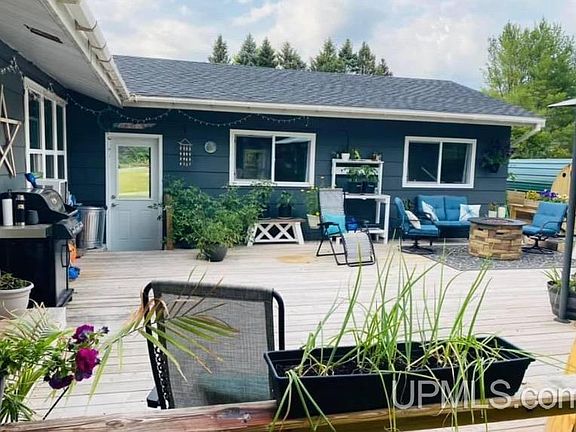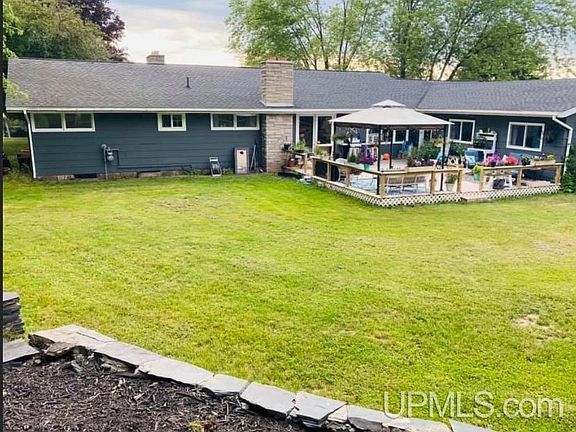 This lovely ranch enjoys an enviable location in L'Anse. Only a stone's throw from L'Anse Downtown Park, the shopping/ dining. The home also offers a view of Lake Superior, Keweenaw Bay. After your local excursions, you'll return to the traditional look and single-floor ease of ranch home living, in a popular neighborhood of low-traffic streets. Out front, the driveway has ample room for visitors' parking. Attractive landscaping makes the most of the expansive yard. As an open air extension of the home, the dependable pressure-treated wood deck turns the sky into your blue or starry ceiling. With open-air porches, you're sure to find outdoor sunlight or shade as needed. As pleasant as it is to linger on either porch, the interior features exert an irresistible pull. Hardwood flooring throughout is quiet beneath sock feet, and sounds great beneath hard-sole shoes. You'll enjoy the spaciousness of the open floor plan. As you walk into the home you'll enter the entertainment area that has been created for all season use to enjoy watching sports, visiting with friends or just relaxing by the pellet stove. The kitchen -- stylish, spacious, newly updated, and bathed in natural light -- is in the popular island configuration, maximizing workspace and flexibility. The master bedroom is a great place to start and end the day. Offering uniqueness, and conveniently located on the ground floor, the remaining bedrooms are ready for personalization. The unfinished basement, always useful as storage, also presents a menu of conversion options, whether you have in mind a rec room, guest room, studio, or a secluded home office. (Sauna is not available) Have fun packing this one full of warmth and memories!