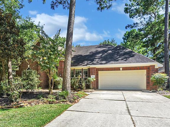 One-Story home with many trees and private feel on cul-de-sac. Upgrades including wood flooring, high ceilings, rounded corners, under-cabinet lighting, and detailed arch openings. Large kitchen with an island and plenty of storage. Open feel that begins from the entrance and runs to the back windows with a wooded view. Stone paths lead to private area/ raised planters in a wooded back yard. Located near The Woodlands High School 9th Grade campus, Dulcet Park, YMCA, and more. Buyer to verify all measurements.