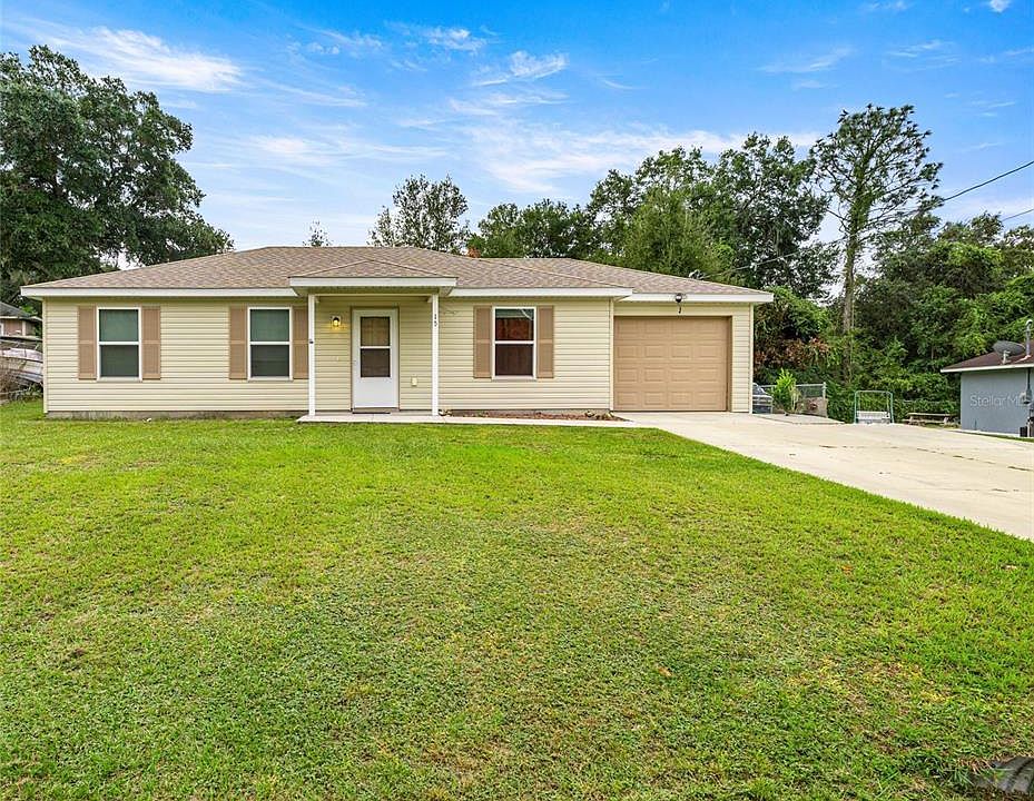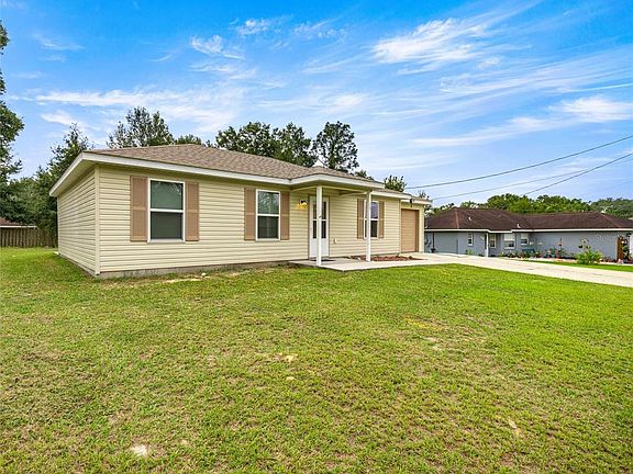 Step into comfort and space with this bright and airy 3-bedroom, 2-bath home featuring cathedral ceilings and an open split floorplan designed for modern living. The spacious kitchen offers plenty of cabinet storage, a breakfast bar for casual dining, and overlooks the main living area — perfect for entertaining family and friends. A convenient inside laundry room adds to the home’s functionality. Enjoy outdoor living in the nice-sized backyard, ideal for gardening, play, or relaxing evenings under the Florida sky. Located in the well-established Silver Springs Shores subdivision, this home combines peaceful living with easy access to shopping, dining, schools, and parks.