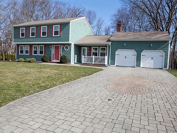 This lovely Colonial is located on a peaceful cul-de-sac in Western Cranston. The first floor features a freshly painted kitchen with updated cabinets, Bosch Stove, Microwave, Dishwasher, and new Samsung refrigerator! The formal dining room and living room are perfect for entertaining and you'll keep warm in the family room sitting by the fireplace! Laundry facilities are tucked away in the half-bath for convenience. Pella Sliders in both the kitchen and den feature between-the glass shades for privacy and dust-free maintenance. Upstairs you'll find a full bath, linen closet and 3 bedrooms, including the Master Bedroom with upgraded "En Suite" bath and walk-in closet. Both other bedrooms offer plenty of closet space! Other amenities include gleaming hardwoods throughout, Harvey replacement windows, covered front porch, freshly painted back deck (both porch and deck have new railings), 2-car garage, sprinkler system, alarm system, and more! There's shelving in the basement for plenty of storage, while the driveway and walkway have been redesigned with pavers. HIGHEST AND BEST DUE BY 5PM MARCH 29th