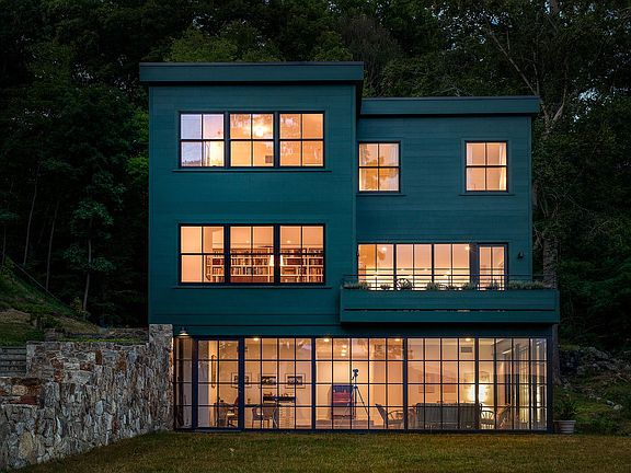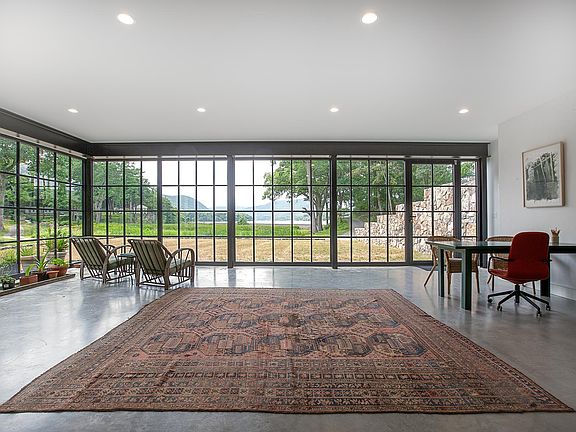 Enjoy the best that the Hudson Valley has to offer at this spectacular 9-acre riverfront estate offering awe-inspiring vistas, stunning passive architecture and a unique private deep-water dock on the Hudson. Cloistered at the end of a long private drive and artfully sited to take full advantage of the amazing scenery, the 3 bedroom main residence is a triumph of modernist design featuring airy open-plan living spaces and vast window walls that dramatically frame the blissful water and mountain views. The serene setting, boasting quater mile frontage along the river, also hosts a charming 2 bedroom guest house, a striking Greek temple/playhouse overlooking the river and a detached garage. Meandering paths, picnic area beneath a high cliff wall, a scenic marsh and fragrant woodland provide a glorious contrast to the riverfront where the large handsome dock serves as the perfect hub for recreation, al fresco entertaining or luxuriating in the ever-changing beauty of the river