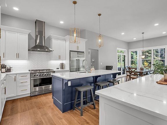 Nestled on 3.84 acres at the end of a quiet cul-de-sac, this stunning 4-bedroom, 3.5-bathroom home offers both space and privacy. Greeting you upon arrival is the gorgeous farmer's porch overlooking the beautifully landscaped yard. The grand entryway leads into a breathtaking 2-story great room, featuring a gas fireplace and custom built-ins. An open-concept eat-in kitchen with 2 islands, upgraded finishes, and large pantry space is perfect for the whole family. The main level master suite has his & hers closets and a spacious bathroom with a large soaking tub as the centerpiece. An oversized laundry/multi-purpose room offers additional versatility for your personalized use. Upstairs, 3 bedrooms, one with its own private suite, and a huge bonus room, offer comfort and flexibility. Outside, find the 3 car garage or enjoy two back decks overlooking a large backyard, surrounded by a wooded area for added privacy. This home is perfect for relaxing or entertaining year-round.