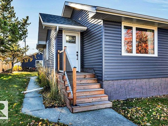 This little gem packs a huge punch! Located in the heart of Devon sits this gigantic 877sqm lot. Stroll over to the park, pool, arena or downtown shops. It’s all walkable from this address. Are you looking to downsize but still love having outdoor space, a first-time buyer, single or young couples? This home has been SUBSTANTIALLY RENOVATED inside & out from top to bottom; you will live worry-free. Double detached garage, large shed, newer fence, beautiful landscaping with deck & stone fireplace area plus room to spare for a garden, pets or kids to play. Exterior siding, windows, shingles all redone. Inside is a true transformation with a spacious kitchen & dining area for this size of a home. Nice size primary suite + 2nd bedroom which is being used as main floor laundry currently. Keep the same layout or make this 2nd bedroom a nursery, office, or bedroom. Two stunning bathrooms located on each floor for your convenience. The basement provides usable rec room, storage and more bedrooms. One of a kind.