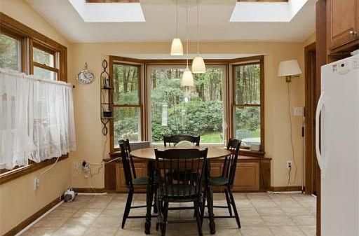 Be first to visit This Expansive 2000 square foot residence which features 8 rooms, 3 bedrooms, 2 full baths with a one car attached garage. A unique floor plan with large master bedroom suite with its own private full bath and sitting area. Inviting living room which opens into the dining room. Open eat in updated kitchen with separate eating area with skylights and sliders leading to a private,serene, beautifully landscaped acre lot. All this within a short distance to Lake Massapoag