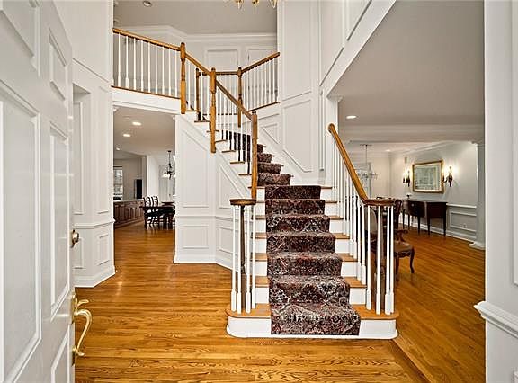 Turnkey brick and clapboard colonial with great curb appeal and a bright, open floor plan. Southern exposure provides abundant natural light. A two-level foyer flows to the formal living room, dining room, and office. The conservatory with three walls of windows and skylights is an in-home retreat. The eat-in kitchen with high end appliances, blends to the great room with fireplace, and expansive outdoor deck. A mudroom with laundry, and powder room complete the main level. The second level features a master suite with sitting and dressing areas, and oversized closet. Three more well-proportioned bedrooms and full bath. Huge, walkout, above-ground lower level with full bath provides fantastic entertaining, relaxing and storage space. High ceilings throughout. Beautifully set at the end of a cul de sac in a great neighborhood. Local trails and backroads for hikers and cyclists of all levels. Minutes to shops, school, parks, restaurants, and train. John Jay Schools.
