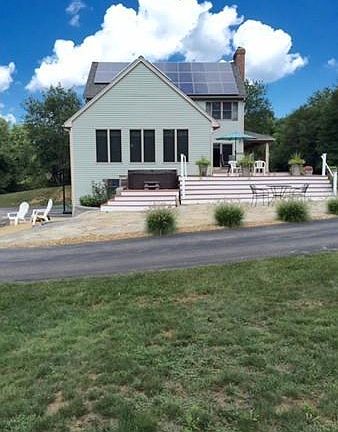 Spectacular 2700 SF Contemporary Colonial is located right off Route 9 in desirable West Brookfield. Spacious open-concept kitchen, breakfast bar, and lovely dining room, for easy entertaining. Vaulted great room boasts a wall of windows overlooking an absolutely gorgeous in-ground pool. Formal LR with Napoleon fireplace insert. Country wide pine floors and natural woodwork throughout. Cathedral Master bedroom ensuite, 2 additional bedrooms and bath complete 2nd floor. Walk up attic. Finished walkout lower level. 2 car garage. New roof in 2011. STUNNING 36 x 36 Barn built by Richard Kemp is spectacular. Removable stalls. Wrap-around deck with hot tub and fire pit. Lush grounds. Gentleman farmers will love this property and at this price, is NOT to be missed.