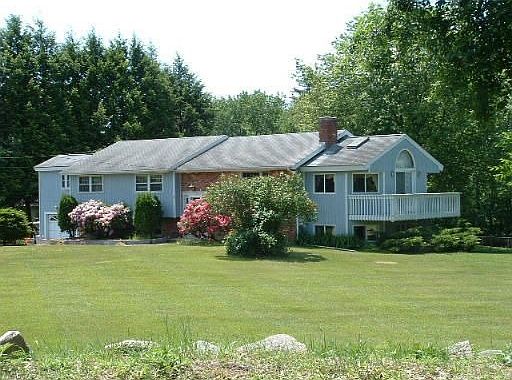 Wonderful North Tewksbury location for this over sized split entry. Master bedroom has full bath, sitting room and private balcony off the back. Spacious kitchen with island and separate eating area. Formal dining room with cathedral ceiling and french doors leading to a private deck. 2 fireplaces - living room and family room. 2 car garage and work shop. Flat acre corner lot.