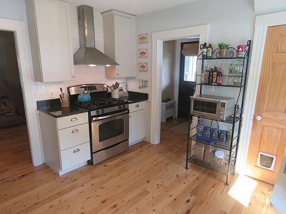 Fall in love with this Victorian Cottage circa 1920 that is loaded with upgrades & improvements. Fabulous newer kitchen w/granite counters, stainless steel appliances including gas range w/vent hood. Gas fireplace in living room. Bathroom updated in 2009 w/new toilet, sink & jetted tub. New boiler & split system air conditioning in 2014. Master bedroom has a wall of storage (stays). Newer boiler, electrical panel, roof & windows. Garage has been improved to accommodate one small-to-mid-size car. Extensively landscaped grounds w/beautiful plantings, plenty of privacy, and fully fenced. Newer shed is included. Desirable North Grafton location on low-traffic street is very close to train station, MA Pike, Tufts Vet & major routes. Enjoy a quiet oasis perched on a hill with all the conveniences nearby. Good things DO come in small packages!