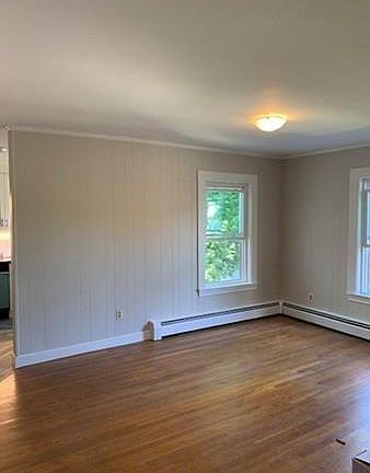 Bright and sunny first floor apartment with large bedroom with hardwood floors. Currently in process of being remodeled. New kitchen and bath. Air conditioning with wall mounted split system, and new windows. Convenient and quiet area. Walk to stores, restaurants, shops and commuter rail. Close to all major routes. Full renovation including: new appliances, new kitchen with granite counters and stainless steel appliances including dishwasher. Generous storage. Individual washer and dryer hook ups in basement. Off street parking, large yard and pets welcome! Don't miss this unique apartment in a peaceful neighborhood setting. Available January 1st. Rent includes water, sewer, trash pick up, snow removal and grounds maintenance. PETS PERMITTED . More photos to come following completion of remodeling. Current Photos are of another unit with similar remodel.
