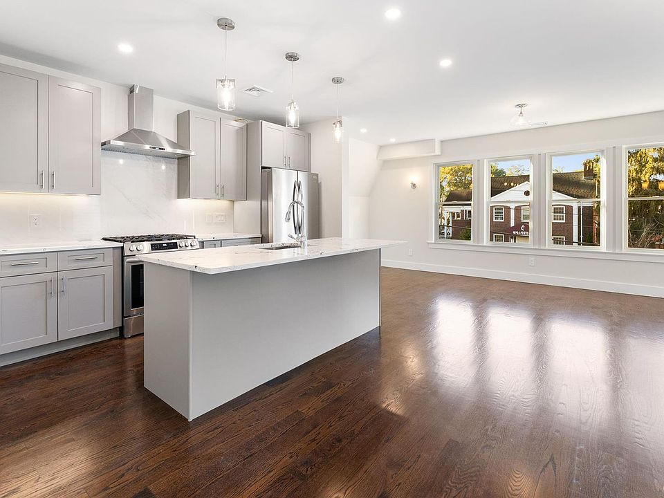 The contemporary kitchen showcases quartz countertops, a large island, custom cabinetry, and stainless steel appliances, flowing seamlessly into the spacious living and dining areas perfect for entertaining. The third-floor primary suite is a private retreat with a luxurious bath featuring a soaking tub, walk-in shower, and an expansive walk-in closet. Additional highlights include in-unit laundry, central air, and proximity to Metro-North, schools, and shops.