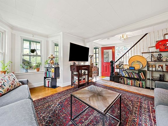 Charming and private, this refreshed home is tucked away on a quiet North Randolph side street and ready for move-in! A sunny enclosed front porch is perfect for relaxing or use as a mudroom. Inside, the inviting living room features gleaming hardwood floors and fresh paint and updated electric. The kitchen opens to the dining area and vaulted-ceiling family room with recessed lighting and walls of windows, filling the space with natural light. A back door leads to the deck overlooking a private backyard and gorgeous brook—ideal for entertaining or quiet evenings. Upstairs, two spacious bedrooms offer generous closet space, fresh paint, and brand-new carpet. A newly finished basement provides a versatile, separate living space—perfect for guests, a home office, or extended family. Conveniently located just minutes from public transportation, Routes 24 & 93, plus local dining and shopping. Whether starting a new chapter or seeking a cozy retreat, this home delivers! Open house SUNDAY