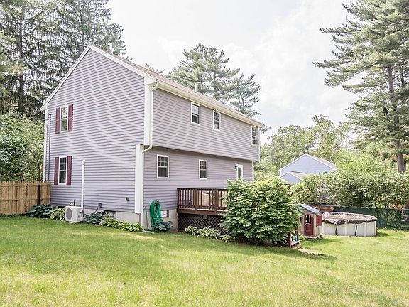 Welcome home to picture perfect colonial nestled behind the historic Searles stone wall offering a private setting. The first floor has an open floor plan which features a large kitchen, family room, living room, and a 1/2 bath with laundry. Upstairs you will enjoy a generous master bedroom with coffered ceilings, 2 closets and a master bath. There are two additional spacious bedrooms and a full bath. The finished lower level offers an excellent bonus room and can serve many purposes and a two car garage. Don't forget to enjoy your summers outside on the two tiered deck overlooking a private fenced in yard with above ground pool! Showings start at the open house Sunday June 18th 11:00-1:00.