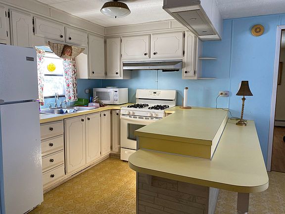 Enjoy your retirement years in this spacious mobile home not far from the ocean. Features 2 bdrms, 1-1/2 baths and open concept living room with tipout, dining area and kitchen area with breakfast bar. Front and back screened in porches and a great wooded lot in a desirable park. Shed is in good condition. No central a/c but owner will be happy to leave window units. There is forced hot water heat by natural gas. Heating bills under 1,000 dollars. Park approval required, Pet is allowed, dog or cat , see rules. Home has many perennials that bloom in summer. . Town water and sewer. Mail delivery is at end of driveway, no going to the park mailboxes!!! Close to beaches, shopping, easy highway access. Showings begin on March 1st...
