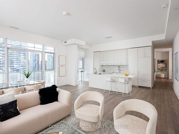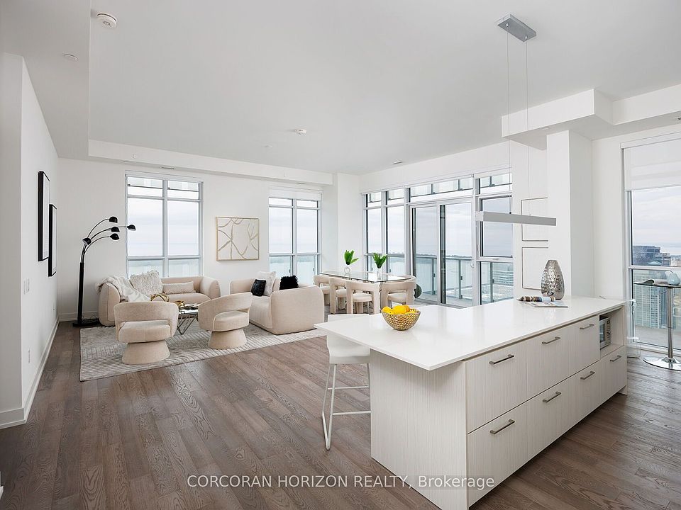 Peeking over top of Sugar Beach, this 4 bedroom Sub-penthouse boasts almost 2,400 square feet of shimmering lakefront views! With 11 foot ceilings, you'll step into a stunning space with an incredibly airy floor plan. The open concept living, dining and kitchen are surrounded by floor to ceiling windows and open to the expansive wrap around balcony. The primary bedroom is very private and features a 5 piece ensuite & his and her closets with plenty of storage. The second bedroom has a walk out to the balcony and a large walk-in closet and the third bedroom can be used as a large family room or office. The fourth bedroom has incredible south facing views and is equipped with a 5 piece ensuite and large walk in closet. A 4 piece washroom and large laundry room complete this spectacular unit. Live a lifestyle of luxury in a waterfront sub-penthouse with amenities that rival 5-star hotels. Outdoor pool, Sports lounge, Gym, Basketball/Tennis court, Jam studio with access to instruments, Arts & Crafts studio, Family/Kids playroom, Steam sauna, Yoga room, Garden blocks, BBQ, Party room and Movie lounge. Minutes to water taxis, Sugar beach, groceries, entertainment, Scotiabank Arena, Union Station, Parks, Transit & More!