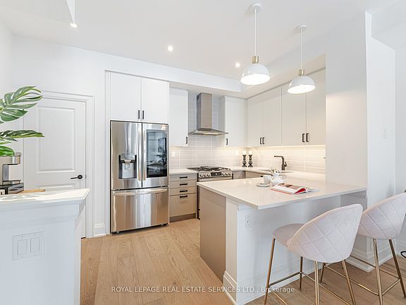Welcome to one of Streetsville's premier modern luxury townhomes, newly built by Dunpar Homes. Perfectly situated just steps from the GO Station and minutes from charming downtown Streetsville, this home blends exceptional convenience with upscale living. Boasting a long list of high-end upgrades, this residence features wide plank hardwood flooring, quartz countertops, premium stainless steel appliances, smooth ceilings, LED pot lights, and stylish black matte hardware and faucets throughout. Enjoy the rare convenience of 2-car parking with a lift system, and entertain effortlessly on the expansive rooftop terrace offering unobstructed views, a gas BBQ line, water hookup, and a pergola for shaded comfort. Additional standout features include 3 skylights, upgraded 7.5" baseboards, soaring 9.5' ceilings on the main floor, elegant iron pickets, and solid oak stairs.This is modern luxury redefined in the heart of Streetsville. Please refer to the attached features list for full upgrade details.