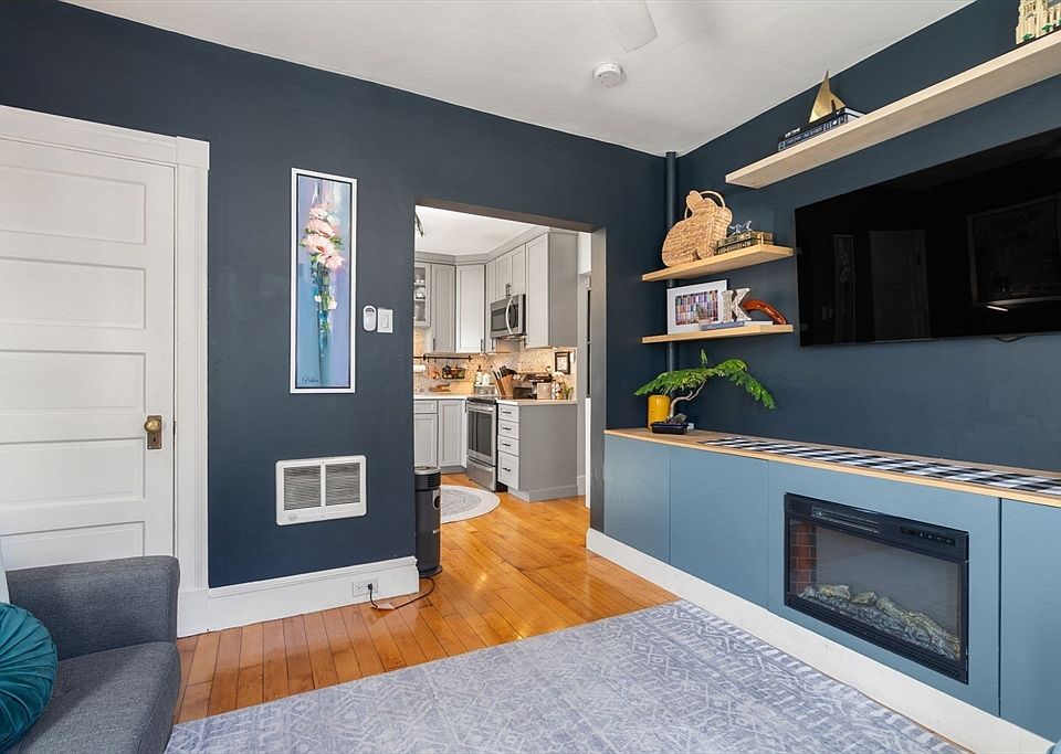 Excellent opportunity to own in the heart of historic Salem! This updated 2 bed, 1 bath first-floor condo offers hardwood floors, high ceilings, and a stylish eat-in kitchen with gray shaker cabinets, stainless steel appliances, quartz countertops, and a spacious pantry. The bathroom features marble floors, a tiled shower, and in-unit washer/dryer combo. The living room includes custom built-ins, an electric fireplace, and newer windows that fill the space with natural light. Generous closet space throughout plus deeded basement storage. Enjoy direct exterior access to a shared outdoor area. Professionally managed building just 1 block from the Salem commuter rail and close to downtown, shops, restaurants, and the waterfront. Urban living at its finest!