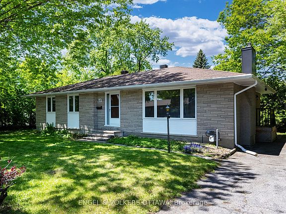 Charming 4 bedroom bungalow in the established and well-located neighbourhood of Manordale. Being offered for the first time in nearly 40 years, this home has been lovingly lived in and well maintained by it's current owners. Situated on a treed and hedged corner lot, this home boasts tremendous curb appeal with an all stone and brick exterior. Beautiful original hardwood floors throughout. The spacious and light-filled living room, facing south, features large windows and a wood-burning fireplace. The kitchen, open to the dining room, provides ample cabinet and counter space, and offers access to the side of the home, perfect for BBQ's. 4 large bedrooms and a full bathroom complete the main level. The partially finished lower level features a rough-in for a 3-piece bathroom and a kitchen sink, an additional bedroom, and tons of space for a family/recreation room, or even potential for an in-law or rental suite with separate side door access. Within close proximity of schools, parks, the Greenbelt, Nepean Sportsplex, and a quick drive to College Square and the 417. Large driveway can accommodate up to 6 vehicles. Freshly painted inside and out. Side door steps/railing - 2019. Chimney repaired and capped - 2019. Roof and eavestroughs - 2018. Windows - 2011. A fantastic opportunity for first-time buyers, downsizers, and investors.