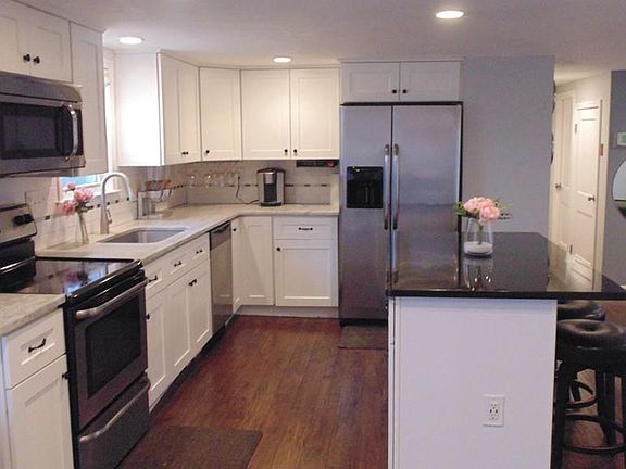 Fully remodeled in 2016 home located on a quiet road about a mile from downtown. An amazing bright open kitchen with rare countertops to make the home unique (flamed finish Indian iceberg granite), granite island with breakfast bar, tiled backsplash, white shaker style cabinets, ALL appliances (2016) included (range, microwave, dishwasher, disposal, refrigerator) This kitchen also has a slider to rear yard. The dining is room is off the kitchen and features cathedral ceilings, huge ceiling fan, plenty of natural light. This home has 4 Bedrooms (two down, two up) plus 2 Full Baths. The bath downstairs features subway tile surrounding shower/tub, tile floor and modern style vanity. The second floor features full bath with glass shower and laundry hookups, Huge master suite with 3 Closets. Recessed lighting throughout most of house, Level yard, of which, most is fenced in. Renovated In 2016 with a new roof and new windows. Please see Firm Remarks for showing instructions.