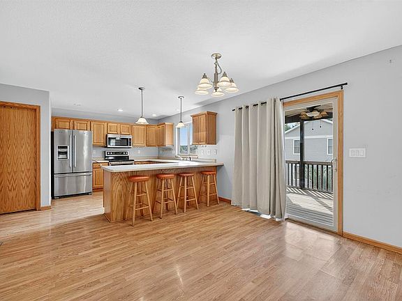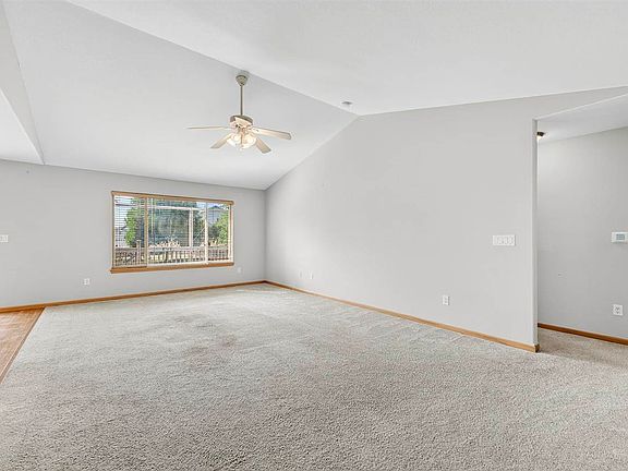 This ranch home sits on a quiet corner lot in a well-established Eastside neighborhood, offering both comfort and convenience. Vaulted ceilings, an open-concept layout, and abundant southern exposure create a warm, cheerful atmosphere throughout the main living spaces. The kitchen is designed for easy living with a breakfast bar and main-floor laundry just steps away. The primary suite features tray ceilings, a private en suite bath, and a generous walk-in closet. Two additional bedrooms and a full bath complete the main level.Downstairs, the walkout basement opens to a huge family room—perfect for movie nights or gatherings—plus a fourth bedroom, full bath, and a massive storage area. A screened porch overlooks the fenced backyard, ideal for quiet mornings or evening relaxation.Extras include a handy workbench in the garage and a location close to parks, walking trails, and the dog park.