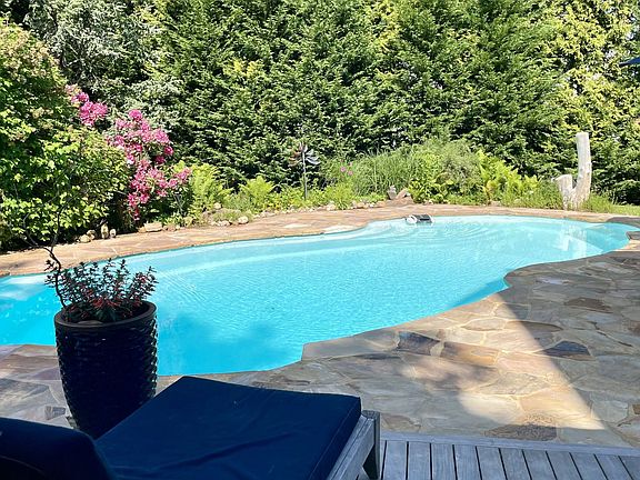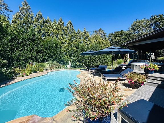 "Near North Haven" and squarely just off the circle, is a rare pre-existing compound. ~5500 SF heated volume includes the newer Main House, a free form, heated saltwater pool, a detached 973 SF workshop/ studio/ office; ~600 SF heated attached garage; an additional 200 SF detached garage, and a somewhat famous meteor of 80,000 lbs. where the blueberry bushes were. The Main House was built circa 1998, perfected & solid, including thicker than normal fireproof sheetrock which also helps with soundproofing. Includes 4/5 Bedrooms, 3.5 Baths; a copper kitchen with a center island ideal for your cooking show year round next to the living room with proper fireplace. There's also a den, a formal dining room and that's just the first floor...wired for sound too. The full finished lower level has a gym area, game room, with a utility room that hosts 13 zone radiant heated systems soundly in place. The attached 600 SF double garage is also heated because laundry room. Well considered, established landscaping, flowers all season and all well guarded by Peach. The back porches overlooking the pool, BBQs, outdoor shower & gardens have room for everyone. The whole compound is just over the bridge from Sag Harbor Village, and only moments to both Long Beach and the Ferry to Shelter Island.