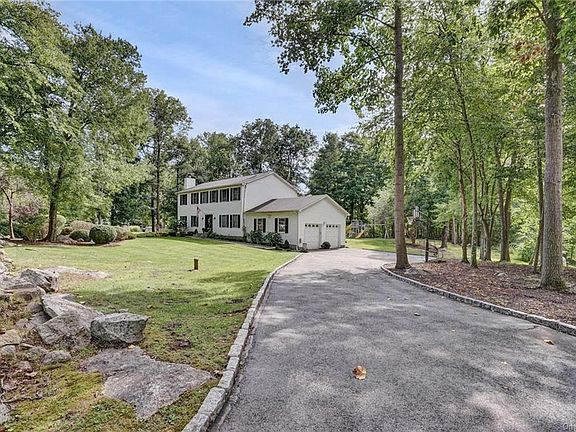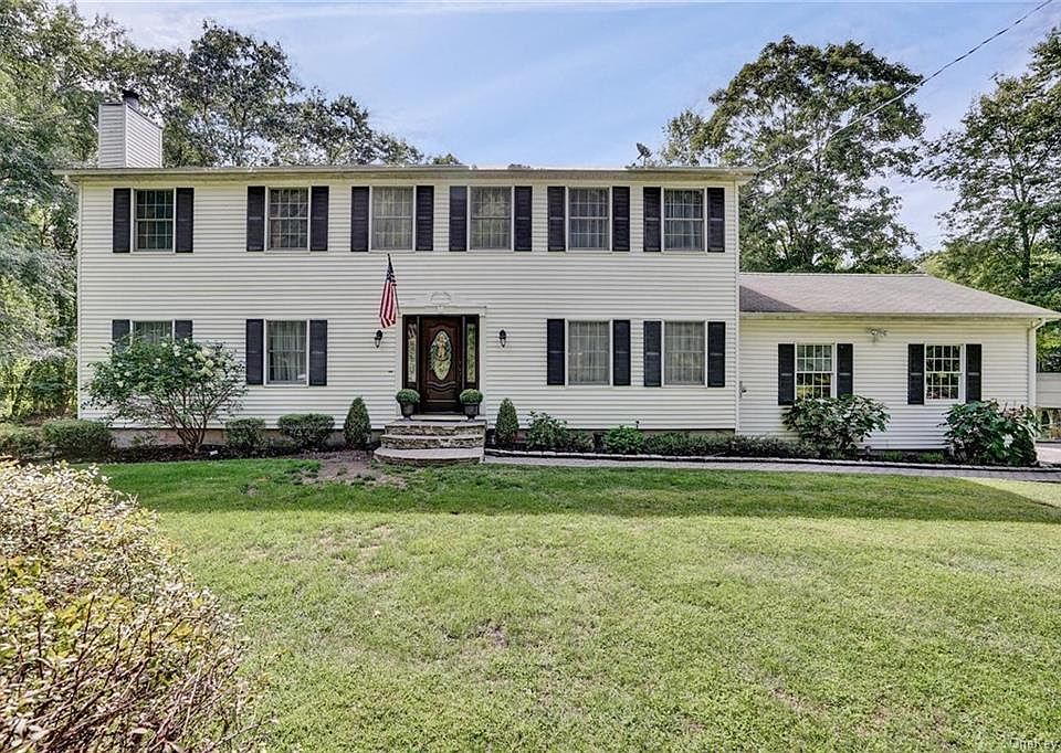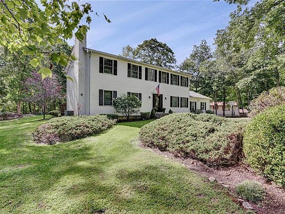 JUST LISTED! Sprawling four-bedroom center hall Colonial offers character and warmth throughout. Open floor concept perfect for entertaining and family gatherings. This lovely home has many fantastic features including large living room with brick fireplace, charming eat-in-kitchen with ample counter tops and cabinet space, family room, formal dining room with sliding glass doors leading to oversized deck and beautiful hardwood floors as seen. Master bedroom complete with master bath. Three additional generous sized bedrooms with brand new wall-to-wall carpeting. Full finished basement with plenty of room to accommodate den area, bar with sink, game tables and work-out equipment. This outdoor rustic paradise secluded from the street is truly remarkable. Well-manicured, flat, park-like property with walking paths, firepit, custom built swing set and slide -- all in a picturesque setting. Large two car garage. So many extras!