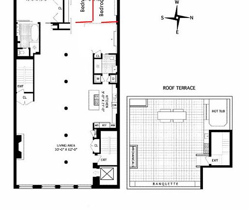 Loft one bedroom can easily convert to a two or three bedroom (by Landlord expense within 4 days of completion). This Spectacular Stunning Soho Loft is exactly what a Soho Loft should look like. Flexible lease terms. Fully Furnished Move in Ready Condition, all you need to bring is your luggage. This full-floor loft has it all from the Keyed Elevator to a Private Roof Terrace with all be bells and whistles included.. This very sophisticated and well-designed totally renovated apartment is perched on the 5th Floor of a Prewar Cast-iron Condominium building, with almost 3000sf of interior space and 1100sf exterior. As you enter through a key locked elevator you will be stunned with the wide-open layout 11' high ceilings and great light streaming through 8' high Eastern and Western facing windows. Immediately to the right is a wall of closets, and straight ahead is the beautifully designed Living Room with a wood burning fireplace and custom cabinetry that hides the large screen TV above it. The open kitchen includes a 48" Subzero refrigerator, 48" Viking range, dishwasher, and wine cooler. Off the kitchen is a full-sized washer and vented dryer. And the Dining area will hold an endless amount of dinner guests enough for the grandest of parties. The master bedroom with 2 western facing windows includes custom closets and a large ensuite bathroom with double sinks, a soaking tub and steam shower. The study area is large enough to create a full bedroom and separate office, both accessible to the second full bathroom. Saunter up to your own private roof terrace completely decked out with a covered kitchen, hot tub, large screen TV, planters, and all-weather green flooring. Wide open views clearing most of the surrounding buildings. A modern dining table set, lounge seating and umbrellas will provide ultimate relaxation and great entertainment opportunities. This fifth-floor Condo is one of 5 residential units at 15 Mercer Street. It is wired for sound indoor and outdoor, includes central A/C and has an abundance of closet and storage space throughout, plus a large private storage room in the basement. This full floor loft is massive and open and is situated on one of the quieter blocks in prime Soho. And did we mention the amazing roof terrace?!