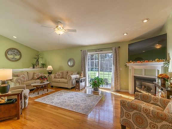 This is the one you have been looking for! Rare find for this 1329 Sq Ft Pristine Garden Condo with 1 car attached garage. One level living at it finest. Large impressive kitchen with a breakfast bar plus a large dining area and hardwood floors, Granite counters and a tiled back splash. All newer kitchen appliances remain plus the washer and dryer. The Living Room has a gas fireplace, hardwood floors and vaulted ceiling with sliding glass doors leading to the private patio and a well landscaped back yard. The main bedroom has vaulted ceilings and a full bathroom with a double vanity. The second bedroom could be a den or office. There are two finished rooms in the basement for additional living space. This over 55 condo is in excellent condition and is located in the exclusive Mill Pond Estates. Don't miss this one. Showings begin at Open House Sunday 12/7/2025 from 12-2.
