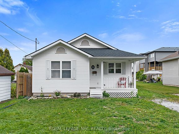 Surprisingly Spacious with 1075 sq ft on the main level alone plus a finished lower level! An unassuming but attractive white bungalow on a quiet street in the peaceful Hamlet of Dain City. This home is much larger than it appears and has an amazing amount of well-designed living space. Enter the front door and discover a large living/dining room with front door coat closet & new laminate flooring. The very functional galley kitchen comes with appliances, a pantry closet plus lots of table space in the dinette with sliding doors to the concrete patio. The main level offers 3 bedrooms plus a 4th downstairs. The lower level "double room" bedroom is ideal for the teen who wants his own hangout plus a bedroom. There is a recreation room & a 2nd bathroom downstairs as well. Other features include: no carpeting, owned hot water on demand unit(2021), newer exterior concrete, sump pump with battery backup, high ceilings (7'8") in basement plus lots of natural light. Exterior is a low maintenance vinyl clad home with a private driveway, 2 year old roof shingles & a charming covered front veranda. The rear is fully fenced and offers a shed, 2 large patios plus a really nice screened-in gazebo. If you are the outdoorsy type, this area is known for its water sports on the canal, walking trails & its country-like feel on the edge of Welland. Perfect for retirement couple, large family or first time buyers, which narrows it down to just about everyone. Don't miss this opportunity & arrange a showing today. Flexible closing but available immediately.