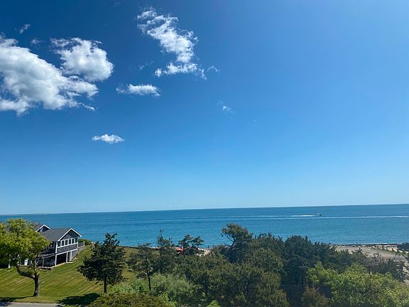 Unparalleled views from Wood's Hole and Cape Cod across the Sound to Chappaquiddick and beyond. Active harbor views, ferry crossings, boating of all varieties and beaching are at your fingertips from this 5 bedroom 3 bath sophisticated farmhouse style home. Perched high over the water with a sloped, extensive yard, a small olive tree grove buffers the walkers and bikers on East Chop drive keeping the focus on the ocean and the serenity of this ideal location. This home was built in 1968, and is a elegant version of an oversized Farmhouse. The wide rough hewn plank floors enhance the open living and dining areas that surround the wood burning fireplace, anchoring the great room on the ground floor. You can see the ocean from every window as you move through this house. The extra large bedrooms were created for extended family living and an enormous front porch adds living space, holding extra seating, a full dining area or any number of other configurations. There is a convenient 1st floor bedroom with stunning views, and the upstairs master with private deck is its own oasis of serenity. A clean and dry basement encourages expansion as does the 3rd floor unfinished attic space that would make an incredible master suite. The gardens are sophisticated and local plantings keep them low maintenance and ample, blooms are constant. Lovely groupings of trees are placed all over this special property adding to its allure, natural beauty and simplicity. This property is in great shape and is being sold as-is.