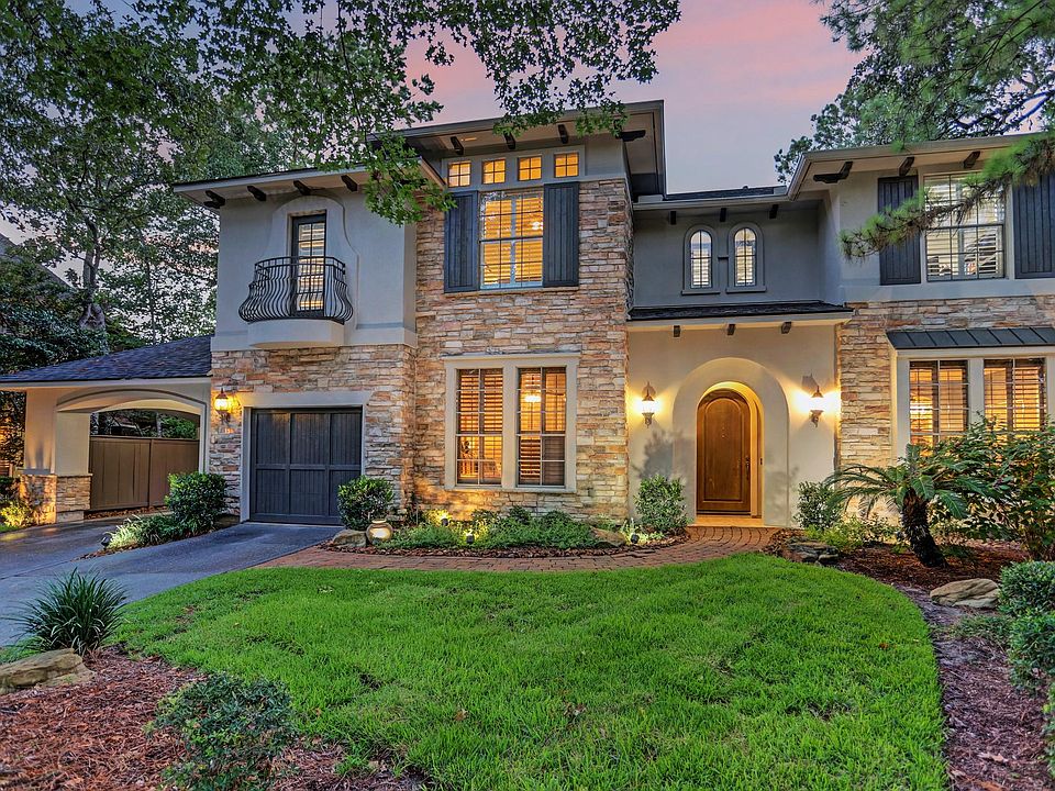 Meticulously maintained & exquisitely upgraded Lifeforms home featuring 5 beds, 4 full/2 half baths & 4 car garage, It sits on a nicely wooded, private, oversized cul-de-sac lot (16,854 sq ft) w/ a quaint courtyard & picturesque swimming pool/spa. Owners spared no expense in updating the home, INVESTING OVER $210K since 2015: exterior stucco & paint ($30K), 3 new A/C & furnaces (2021), roof (2015), custom rear windows ($23K), landscape lighting ($4K) AND MUCH MORE! SEE FULL LIST IN ATTACHMENTS. Downstairs features a renovated gourmet kitchen open to the breakfast & living rooms, formal dining, billiard room, secondary bed w/ ensuite bath & office/study (currently a game room). Upstairs feat a spacious primary suite w/ sitting area, cozy fireplace, his/her closets & huge bathroom along w/ 3 secondary beds/2 baths & family room. It has never flooded & is near all the retail, fine dining, parks, pools, walking trails & other amenities that The Woodlands has to offer. Zoned to Conroe ISD