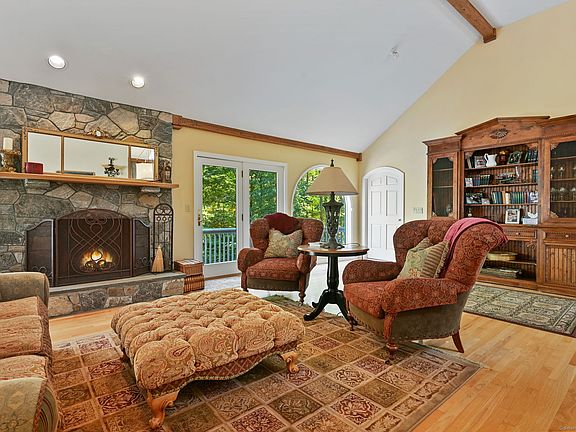 Floor to ceiling fireplaceSeasonal lake viewsLarge multi-level deckHeated inground poolRenovated lower levelVaulted ceilingBeautiful dining room