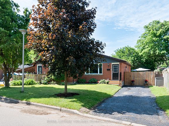Affordability with style. Check out this 3 bedroom bungalow semi-detached home in north/east London close to access to the 400 series highways, Clarke Road or Veteran's Memorial Hwy. Open concept main floor living with generous kitchen island boasting breakfast bar set up plus built in stainless steel appliances, floating wooden decor shelves, subway tile backsplash and ample dining room area with built in storage cabinet, update designer lighting and wooden feature wall in living room area with electric fireplace. The barn door concept for the main floor bathroom reduces usable access space and increases function. A true rare find in that the primary bedroom has a private ensuite and walk in closet. The lower level is finished with another bedroom, full bathroom, work out room, family room and loads of storage space for all your seasonal items and needs. Enjoy the private fenced rear yard with full swing gate for boats, trailers or extra equipment needed to be stored in the yard. Check this property out and bare witness to this incredible opportunity in an affordable price range.