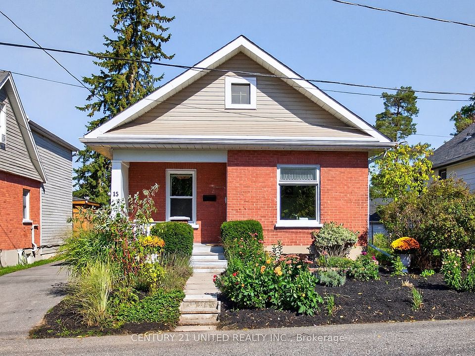 Excellent starter or downsize home in an excellent family-friendly neighbourhood.Perfect for the outdoors type, just steps from the Rotary Trail for hiking, biking, and a leisurely stroll along the Otonabee River.Welcome to 15 Moir Street, a charming 2-bedroom, 1-bath bungalow that blends timeless character with modern comfort. Bright and airy, this home features high ceilings, gleaming hardwood floors throughout (no carpet!), and wide trim and moldings finished in a crisp, clean white. The living spaces flow beautifully, showcasing warmth and style in every corner.Step outside to enjoy a partially fenced backyard with raised and boxed planting beds, ideal for vegetables, herbs, or flowers. Plus a deck off the rear mudroom, perfect for relaxing or entertaining. Out front, a cozy porch invites you to unwind, socialize with neighbours, or wave to friendly passersby heading to the Rotary Trail for a stroll. The front yard also features a thoughtful cut-flower garden, offering fresh bouquets for family, friends, or any special occasion.A bonus versatile She Shed with a separate insulated pottery/craft studio or workshop, an upper loft for relaxing, reading, or escaping the day, along with ample storage, ready for your imagination.Meticulously cared for and thoughtfully updated, the home boasts a newer kitchen and bathroom (approx. last 5 years), along with recent energy-efficient upgrades including furnace, central air, on-demand hot water, and attic insulation. Truly move-in ready!Located on a quiet East City cul-de-sac, you'll love being just steps from the RotaryTrail, Otonabee River, and nearby community parks. A rare opportunity to own a home full of character in a setting that offers both charm and convenience.