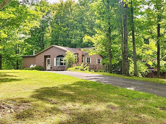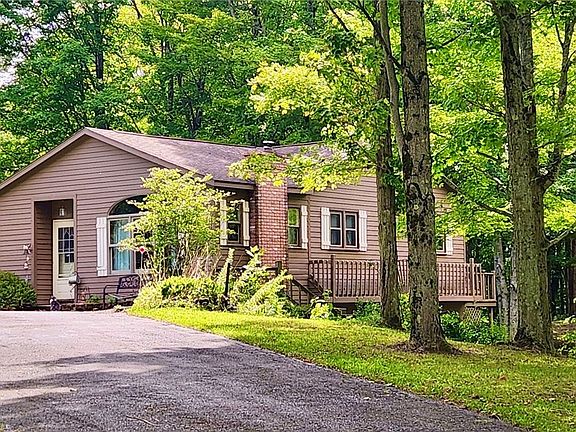 This Builders' Own Custom-Built Ranch has all the QUALITY & CHARM you would expect from careful consideration. Nestled on nearly 5 Acres in a storybook, wooded, park like setting -you can make memories to last for generations! Outside you will find an ideal mix of Mature Trees, Landscaped gardens and expansive lawns. It is truly the Perfect setting for picnics and outdoor activities with your loved ones. The Spacious paved driveways leading to the home and detached garage make for loads of parking areas. Inside is a terrific functional floor plan that feels roomy. You will appreciate the Large Living Room with gas fireplace and Oversized Windows overlooking the scenic backyard. Relax in your Gorgeous Sun Room with natural wood accents & pellet stove, The kitchen has oak cabinets, garbage disposal and big pantry open to the Formal Dining room makes entertaining easy. PLUS - a screened in porch is extra room for whatever you desire. First floor laundry for your convenience even has a sink. Primary Bedroom has huge closet with built in shelves. 2 car garage under the home (One bay is currently being used as storage) plus Detached garage with apartment upstairs! Yes! There is Electric, heat and Water too! Central Vac is another amenity that you will enjoy. Don't miss out on this gem of a home. Hope you can see it soon.