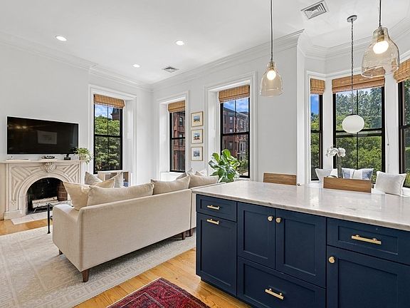 Featured in the film, The Town - this iconic residence offers an open floor plan with private outdoor space, soaring ceiling height, and oversized windows with views of the Bunker Hill Monument. Newly designed Kitchen with custom two tone cabinetry, stone countertops, SS appliances and brick accent wall. Living and dining area offers direct views the Park, hardwood floors, Marble fireplace, custom shelving and window bench. King-size master bedroom features private outdoor space, walk-in closet, and dual exposures. Second bedroom has updated closets and oversized window with views down Lexington Street. Bathroom is fully renovated with shower/tub combination, custom tile work, updated vanity, and wood shelving. Other highlights include Central Air, In-unit Laundry system, and deeded private storage. This Boutique brownstone is pet-friendly, self-managed, and owner occupied. A premier location in Charlestown - next to shops, restaurants, parks, and all major transportation points.