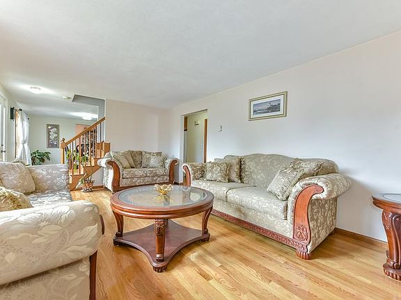 Wonderful spacious colonial located in the Riverdale section of Dedham. This home features 3 levels of living space, almost 3,180 SqFt. 1st Floor features living room with fireplace, dining room, large open space kitchen leading to the family room, with high vaulted ceilings and pellet stove. 1 bedroom and a full bath on this level. 2nd floor features 4 bedrooms, large master and a full bath. All bedrooms have gleaming hardwood floors, spacious closets and separate heating zones. Pull-down attic for additional storage. The right side of the basement features an in-law set up with fireplace, living room, kitchen, 1 bedroom, full bath and separate entrance. The left side of the basement features a storage room and 20 x 12 ft entertainment space with separate entrance to the patio and leveled backyard with a storage shed and lots of fruit trees. 2 driveways, one on each side of the house, provide plenty of off street parking.