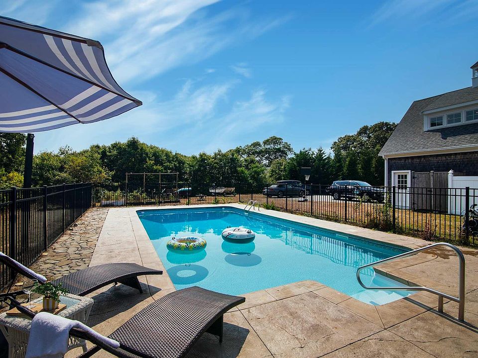 Perched at the top of a private 1-acre lot, this newer home checks all of the boxes! The 1st floor primary bedroom suite features a walk-in closet and en suite bath with a walk-in shower and double sink vanity. The great room is the ultimate gathering place, with its open plan blending the kitchen, dining, and living areas. Enjoy vaulted ceilings, a palladium window, built-ins, wide oak floors, and a cozy gas fireplace. The kitchen is a chef's delight, boasting a large island with seating, granite counters, and SS appliances, including new a LG gas range and washer. Outside, refresh in your own pool or relax on the large mahogany deck! Also features a huge unfinished basement, central AC, a two-car garage, and an outdoor shower. With amenities like solar panels (owned), an invisible fence, a generator, and irrigation, this property offers everything you need! The front porch is the ideal spot to catch the colors of a sunset or sip a coffee in the morning as you plan your Cape Cod day! This central location is also convenient to Crystal Lake, conservation areas, Nauset Beach, Pleasant Bay, and downtown Orleans! Septic passed. Buyers/agents to confirm listing details.