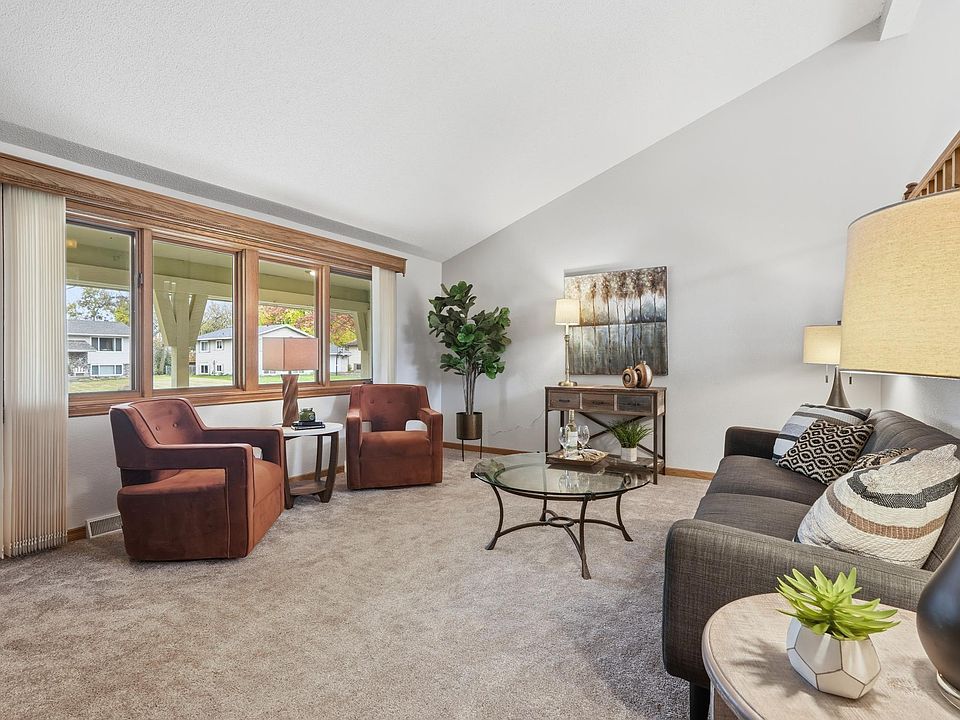 Spacious primary suiteFront porchVaulted ceilingsIn-ground sprinklersNatural lightNew carpetFlexible multi-level layout