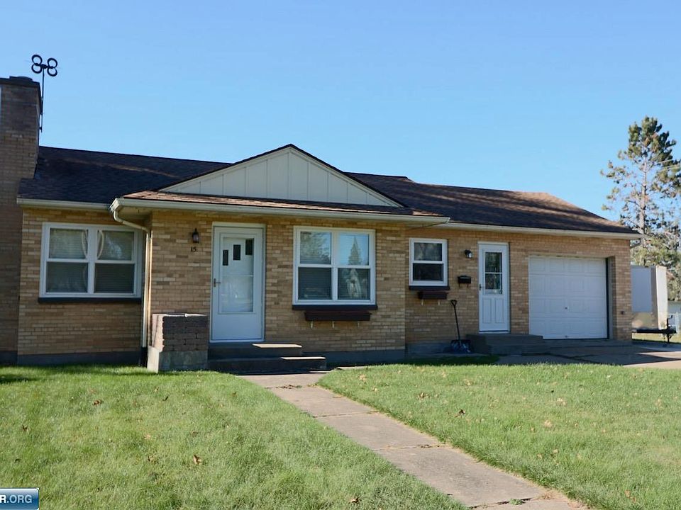 Charming 2-bedroom, 1.75-bath brick home on a corner lot with a 1-stall attached garage. Excellent location—right across from Aurora’s Central Park with Pine Grove Park just out back. The property includes a curved driveway, concrete parking pad, back patio, and a spacious yard with room for outdoor fun or a future 2nd garage. Inside features include an all-new kitchen with updated cabinets, counters, flooring, and appliances. The living room offers a gas fireplace, coved ceiling, and new carpet. A front entryway with a closet adds convenience. Two main floor bedrooms with original hardwood floors and a full bath complete the main level. The finished lower level includes a large laundry room with storage, a new 3/4 bath with a tiled walk-in shower, and a rec room with an electric fireplace, accent lighting, and closet space—great for relaxing or entertaining. A bonus workshop with shelving is tucked under the garage for additional storage or projects. Don’t miss your chance to see it!