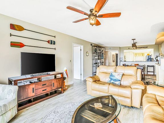 This charming two-bedroom condo has a private balcony with ocean views and is perfect for a family getaway or a get-together with friends. It is delightfully decorated and cozy, with enough space for everyone. The primary bedroom includes an en-suite bath and a king bed. The living room also provides additional guest space with a murphy bed. After a long day on the beach and playing in the waves, head back inside to take advantage of the full kitchen to cook a meal, stay in, relax, and enjoy a movie on the living room's large flatscreen TV. This oceanfront complex is located right on the beach, within walking distance of a bakery, a cafe, a barbecue restaurant, a shaved ice shop, and a juice bar. You can also dine on local seafood at Coconuts on the Beach, a few blocks south, or take an easy 23-mile drive to the Kennedy Space Center Visitor Complex. The historic Cocoa Beach Pier is three miles north, and the Port Canaveral Cruise Port is only five miles farther. Nearby Services and Dining Options Cafe within 1 mile. Casual dining within 1 mile. Dine-in restaurant within 1 mile. Gas station within 1 mile. Supermarket within 2 miles. Places to Visit During Your Stay Attraction Distance From Home Lori Wilson Park 1.3 Miles The Florida Key Lime Pie Company 3.0 Miles Cherie Down Park 5.5 Miles Manatee Sanctuary Park 6.0 Miles Pelican Beach Park 10.9 Miles Golf N Gator 4.0 Miles Cocoa Riverfront Park 10.3 Miles Canova Beach Park 13.0 Miles Things to Know Free WiFi Pets are allowed at this vacation rental. Parking notes: There is free parking available for 2 vehicles. Please note: this home resides in a noise-sensitive area and the owners participate in our Good Neighbor protection program. Our smart home technology will alert our team if excessive decibel or occupancy levels are detected, allowing us to reach out directly with a reminder of maximum occupancy and quiet hours. This technology is privacy compliant, and only monitors the presence of decibels and devices-not any personal conversation or information. Thank you for supporting our efforts to be good neighbors! You must be 21 years or older to rent this property. Attraction Distance From Home Lori Wilson Park 1.3 Miles The Florida Key Lime Pie Company 3.0 Miles Cherie Down Park 5.5 Miles Manatee Sanctuary Park 6.0 Miles Pelican Beach Park 10.9 Miles Golf N Gator 4.0 Miles Cocoa Riverfront Park 10.3 Miles Canova Beach Park 13.0 Miles Things to Know Free WiFi Pets are allowed at this vacation rental. Parking notes: There is free parking available for 2 vehicles. Please note: this home resides in a noise-sensitive area and the owners participate in our Good Neighbor protection program. Our smart home technology will alert our team if excessive decibel or occupancy levels are detected, allowing us to reach out directly with a reminder of maximum occupancy and quiet hours. This technology is privacy compliant, and only monitors the presence of decibels and devices-not any personal conversation or information. Thank you for supporting our efforts to be good neighbors! You must be 21 years or older to rent this property.