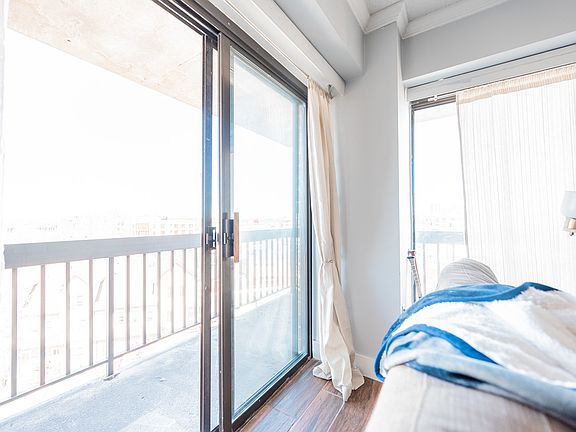 - corner unit with wrap-around balcony, clear Boston skyline view