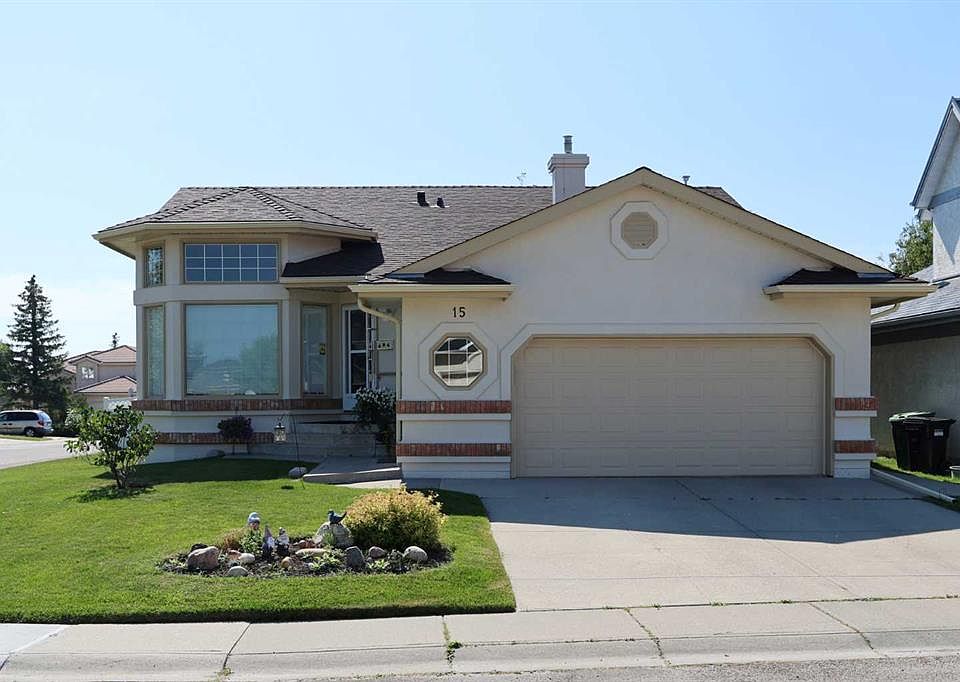 Steps to a park & walking distance to the Edgemont Superstore shopping complex is this wonderful former showhome in the highly-desirable golf course community of the Hamptons. Offering a total of 4 bedrooms & 3 full baths, this fully finished bungalow enjoys soaring vaulted ceilings & central air, heated oversized 2 car garage, beautiful hardwood floors, South backyard & a host of improvements including new roof, stucco exterior & the polyB pipes replaced with PEX. Available for quick possession, this fantastic estate home has a sensational floorplan bathed in natural light, & features a sunny living room with floor-to-ceiling windows, open to the large dining room which will easily fit your family dinners. The bright eat-in kitchen & nook – complemented by a big bay window & cork floors, has loads of cabinet space, built-in desk, walk-in pantry & the appliances include a cooktop stove & new (2025) built-in convection oven. Main floor has 2 spacious bedrooms & 2 full bathrooms; the owners’ retreat has a huge walk-in closet, bay window & ensuite with soaker tub, separate shower & double vanities. Lower level is finished with 2 more bedrooms, another full bath & rec room with wet bar, gas fireplace & built-in bookcases. There’s also plenty of additional space for storage or future development. Main floor laundry complete with built-in cabinets & Whirlpool washer & dryer. Other extras include Hunter Douglas blinds, low-flow/dual-flush toilets, natural gas line for your BBQ on the deck, central vacuum system & storage shed in the South backyard with maintenance-free vinyl fencing, deck (with new vinyl decking in 2023) & patio. Roof/eaves/downspouts are brand new in 2025 & new stucco exterior in 2024. Located on this terrific corner lot only a few short minutes walk to bus stops & the Hamptons Park tennis courts, quick commute to the Hamptons School & neighbourhood shopping, & easy access to area recreational amenities, University of Calgary & hospitals, downtown & so much more!