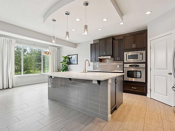This Shane Homes “Leera” former show home in Sherwood backs directly onto a quiet ravine with pathway access and offers a rare combination of location, quality, and thoughtful upgrades. Lovingly maintained by the original owners, it features 2,352 sq. ft. RMS above grade and approximately 3,280 sq. ft. of developed living space, including a fully finished, permitted basement. The main floor is bright and open with 9-foot ceilings, oversized windows, and a kitchen designed for cooking and gathering — quartz counters, an induction cooktop, premium stainless-steel appliances, and extra cabinetry. A front office with French doors and a double-sided fireplace provides a comfortable private workspace. Upstairs, a spacious bonus room with built-in media cabinetry and a wet bar sits alongside a convenient laundry room. The primary suite includes a walk-in closet, a five-piece ensuite, and blackout blinds in all bedrooms. The basement adds flexible space for a gym, theatre, or playroom, plus extra built-in storage. The south-facing backyard has been professionally landscaped and includes a stone patio, deck, remote-controlled awning, and upgraded lighting. The insulated double garage is drywalled with built-in ceiling storage and is EV-ready. Additional highlights include LED lighting throughout, a tankless hot-water system, a high-efficiency furnace, a roughed-in central vac, and a wired-in security system. Roof and siding were replaced in July 2025. Minutes to Beacon Hill Shopping Centre (Costco, Home Depot, GoodLife Fitness) and Sage Hill Crossing (T&T Supermarket, Walmart), with easy access to parks, transit, and designated to Sir Winston Churchill High School.