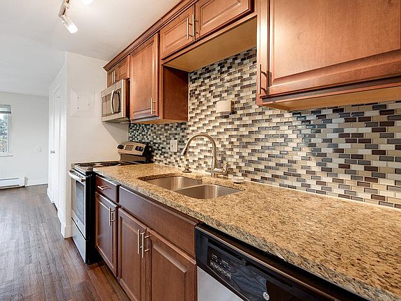 Stainless-steel appliancesGranite countertopsDesigner tile backsplashUpdated kitchensBeautiful hardwood floors