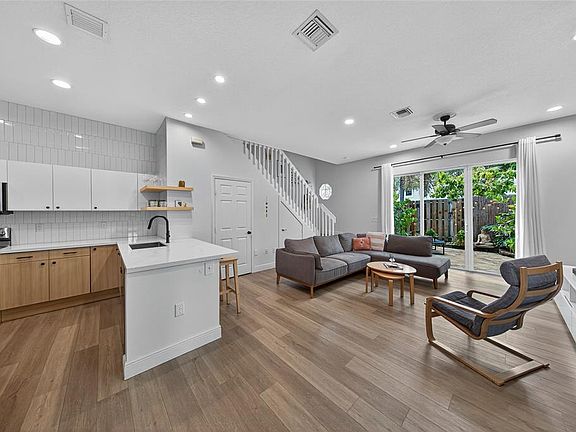 Don’t miss this stylish corner-unit townhouse in east Pompano Beach! Offering 3 bedrooms, 2.5 baths and a 2-car garage, the home features soaring 10’ ceilings, impact windows, and abundant natural light. The open layout boasts a spacious living, dining, and kitchen area, perfect for gatherings. The brand-new kitchen includes quartz counters, white oak cabinets, stainless appliances, and sleek finishes. A private paved patio adds space to relax or entertain. Upstairs, find laundry, a generous primary suite with four closets including a walk-in, plus two additional bedrooms and a bath. Updated with luxury vinyl flooring & freshly painted this home is move-in ready. Just 1 mile from the beach with easy access to dining, shopping, and more! This property is perfect for a fulltime or part time owner and has amazing proximity to the best of Pompano Beach.