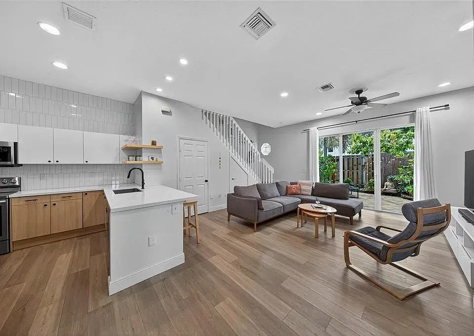 3 bedrooms, 2.5 baths and a 2-car garage, the home features soaring 10' ceilings, impact windows, and abundant natural light. Don't miss this stylish corner-unit townhouse in east Pompano Beach! Offering. The open layout boasts a spacious living, dining, and kitchen area, perfect for gatherings. The brand-new kitchen includes quartz counters, white oak cabinets, stainless appliances, and sleek finishes. A private paved patio adds space to relax or entertain. Upstairs, find laundry, a generous primary suite with four closets including a walk-in, plus two additional bedrooms and a bath. Updated with luxury vinyl flooring & freshly painted this home is move-in ready. Just 1 mile from the beach with easy access to dining, shopping, and more! This property is in proximity to the best of Pompano Beach. Located only 0.5 Mile to the Fishing Pier & Pompano Beach. Whether you're meeting friends for dinner, running errands, teeing off for a round, or walking through scenic parksthis address offers access to it all within minutes. The area balances residential charm with urban accessibility, making it a lifestyle-savvy choice.