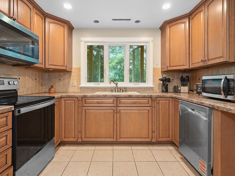 This beautiful four-bedroom ranch has been newly renovated and features a fully finished walk-out basement, with potential for an in-law suite. Freshly finished hardwood floors throughout, including the open concept dining room, living room, kitchen, and bedrooms. The entire home has been newly painted, and the brand-new carpeting and completely renovated bathrooms, featuring modern fixtures, make it feel like new. The kitchen boasts brand new stainless steel appliances, including a stove, dishwasher, refrigerator, and microwave, perfect for preparing meals and entertaining. The large, walk-out finished basement features a spacious living room area, a bedroom, and a full bathroom, making it an ideal option for an in-law apartment or a two-family home with city approval. Located in a private cul-de-sac, this home offers peace and privacy with no through traffic. It's also just minutes away from shopping, restaurants, and has easy access to the highway. With a large one-car garage, driveway parking, and a private, grassy backyard, this home is a dream for outdoor enthusiasts. The backyard offers ample space for a trampoline, pool, or fire pit, making it perfect for family gatherings or relaxation. With the convenience of one-level living and extra space in the basement, this home truly has it all.