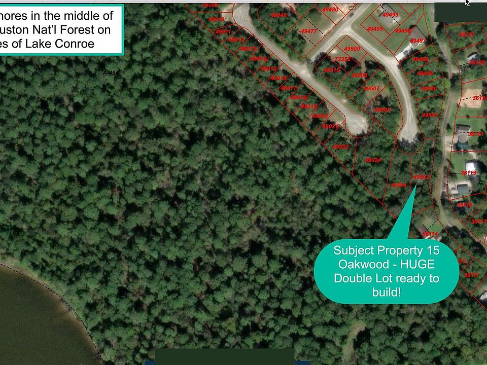 HUGE DOUBLE LOT! Located on a cul de sac! Welcome to paradise, welcome to Wildwood Shores. Be greeted by unbelievable serenity surrounded by the Nat'l Forest and the beautiful shores of Lake Conroe. Enjoy great fishing - good enough for the best catches in the Major League Fishing Tournament held on Lake Conroe in Wildwood Shores. Enjoy a protected bird sanctuary, enjoy the oak trees draped with picturesque Spanish moss. Discover untold Beauty - 2 pools, tennis court, DAY MARINA, playground, basketball, lakefront common areas and MORE! Discover paradise, Discover Wildwood Shores.