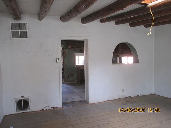Large sprawling adobe Casa on 1.8 acres in Carnuel. Featuring large private walled courtyard, Vigas, Tongue and groove ceilings, large fireplace in huge Great Room. 200 sq.ft. sunroom included in GLA. Private well and septic (All inspections at Buyers expense inc. well & septic). Sold in AS IS Condition with no warranties implied or expressed. Cash only sale as property will not qualify for financing. Auction date 05/22-05//24.